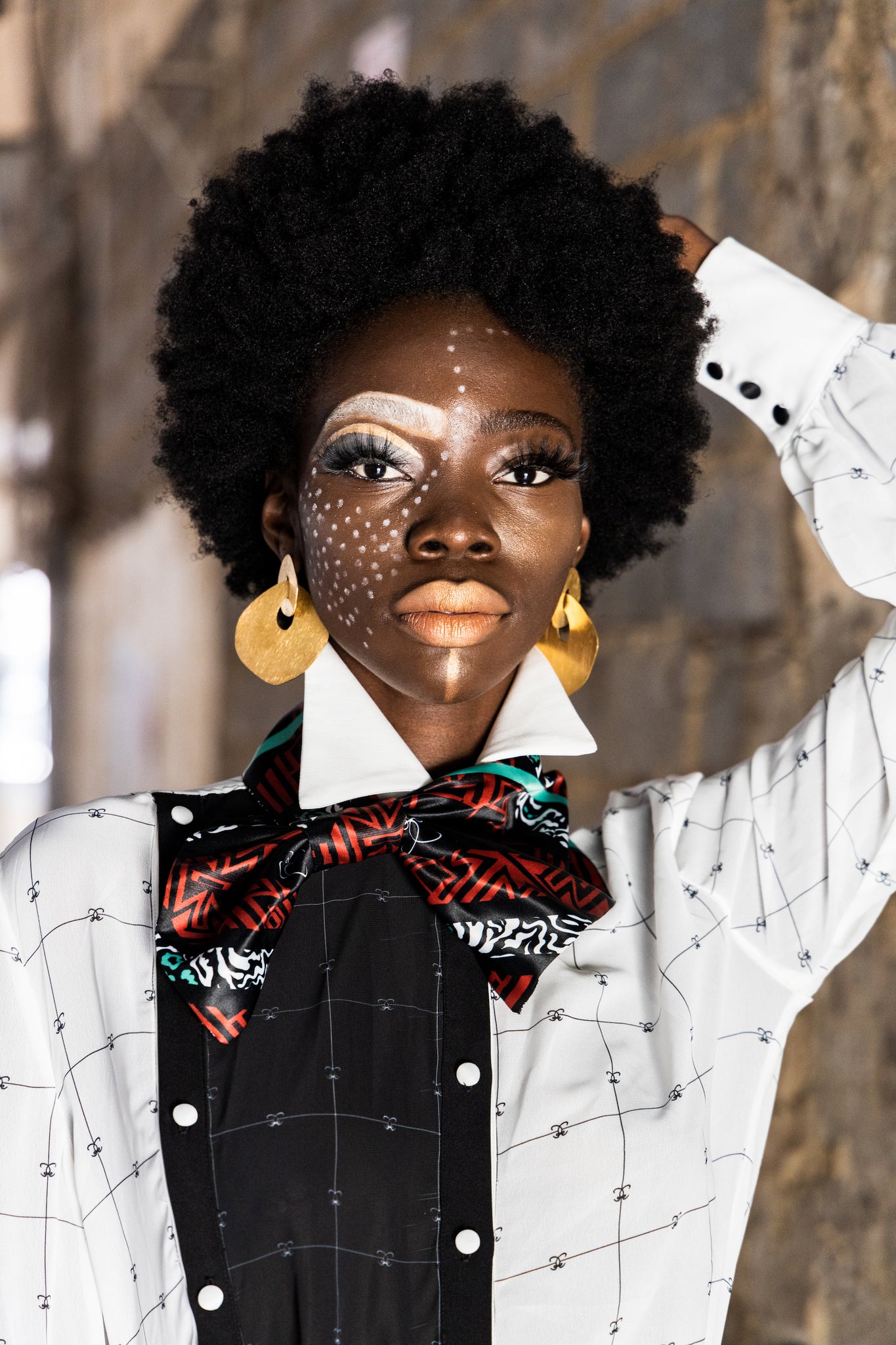 The brand monogram shirt from the BATHO PELE COLLECTION by EZOKHETHO. Model wears size M.