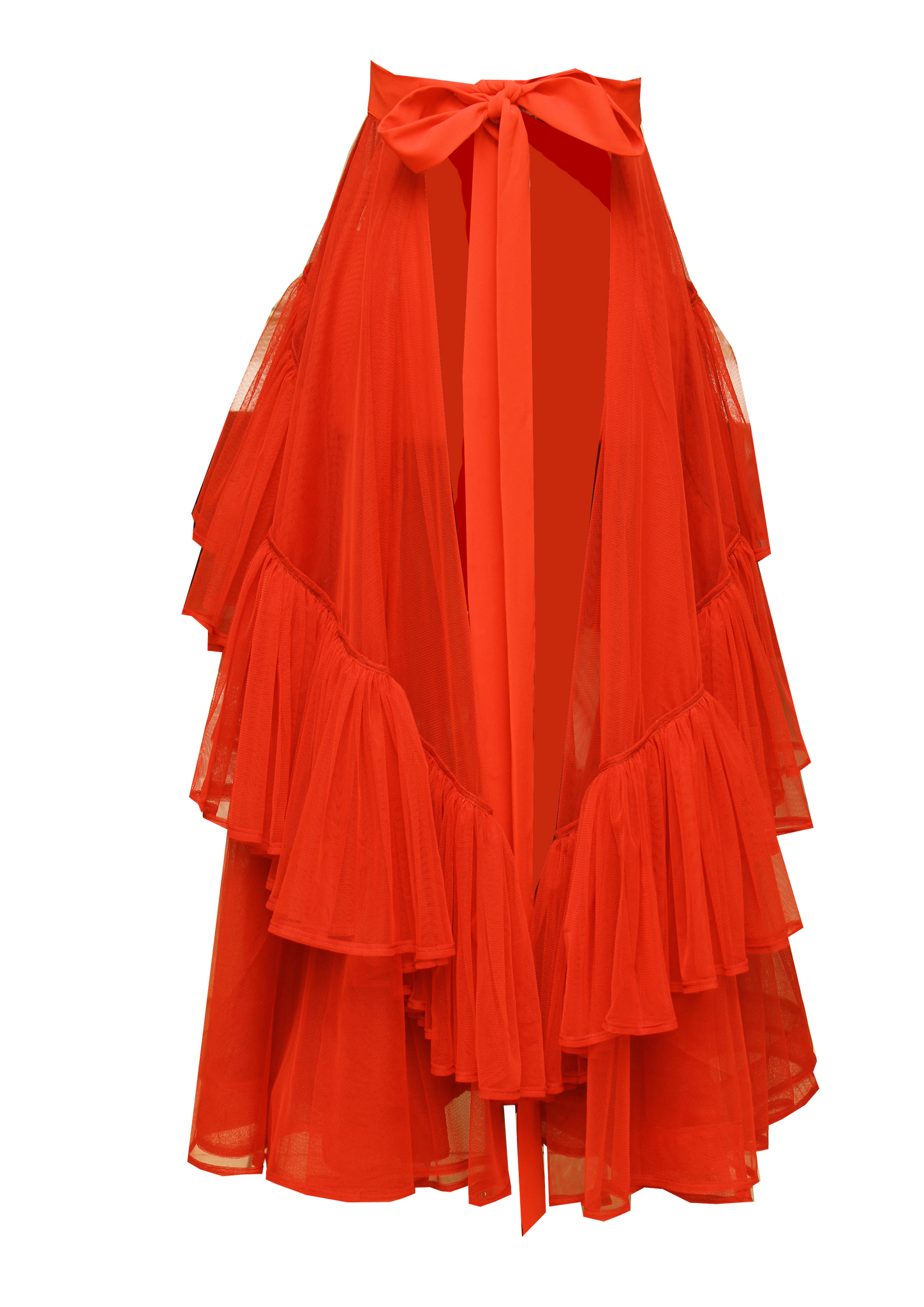 TULLE RUFFLE HALF BODY SKIRT RED