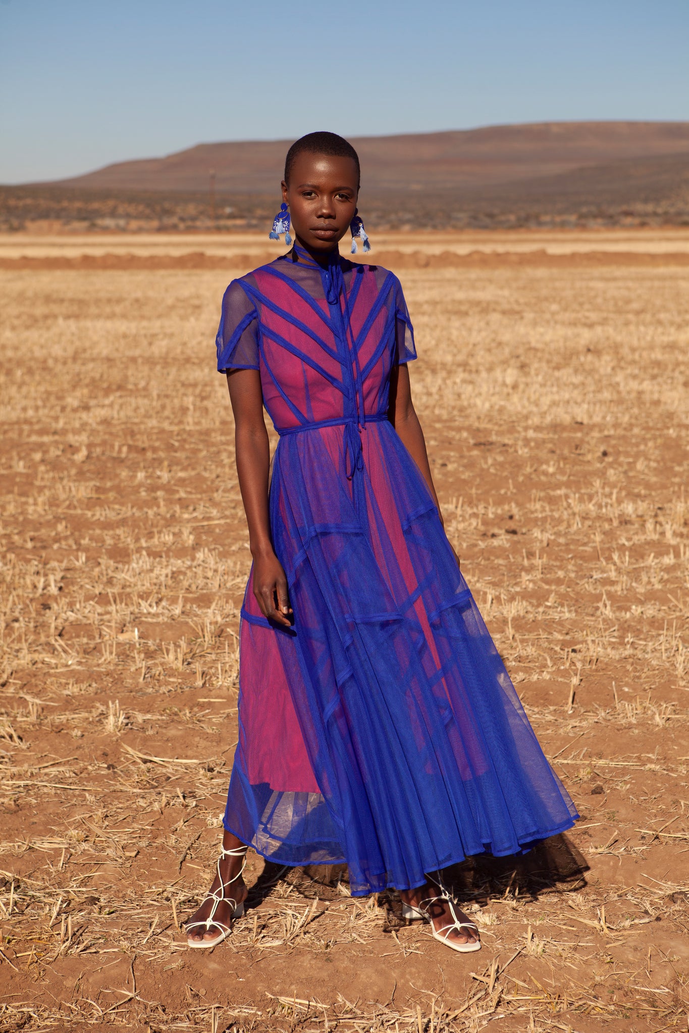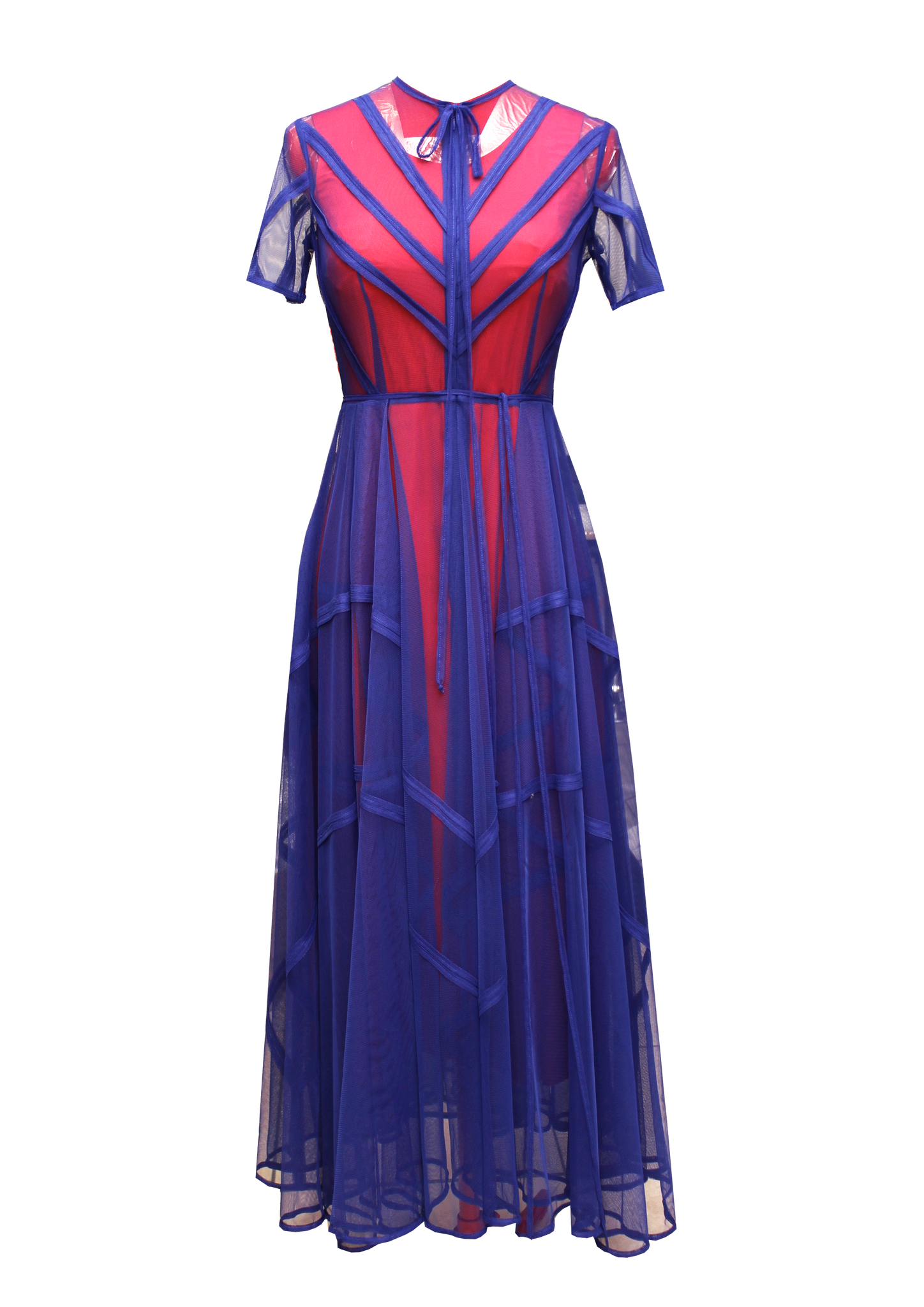 SEAMS TO OUTSIDE BINDED SHEER TULLE DRESS BLUE